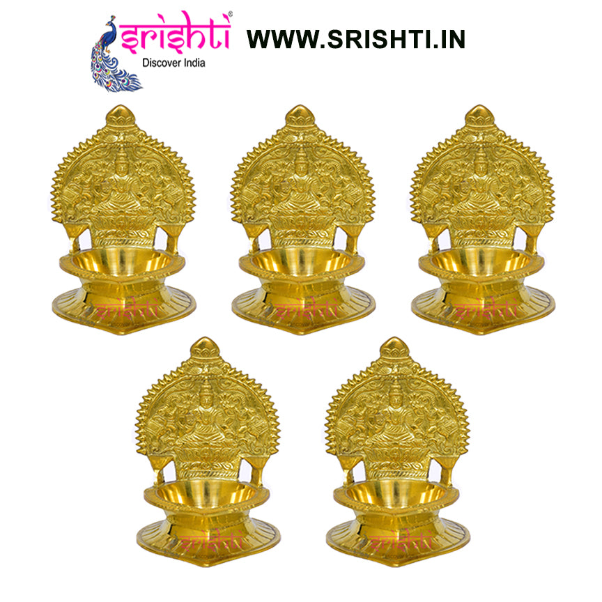 SIKB-Brass Kamakshi Diya Gajalakshmi Embossed-4 Inches-(Pack of 5)