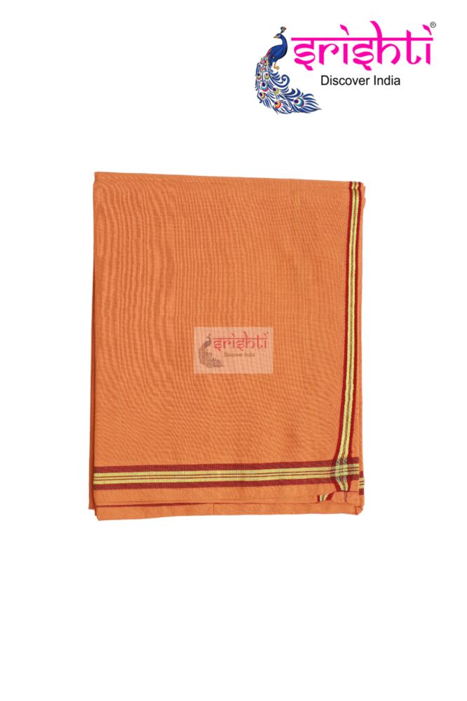 SADV-Srishti Premium Men's Cotton Ayyappa Orange Dhoti/vesti-4 Yards-M02
