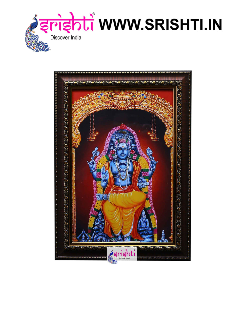 This Dakshinamuthy Photo Frame comes with Wooden Frame and Fiber Glass covering.
