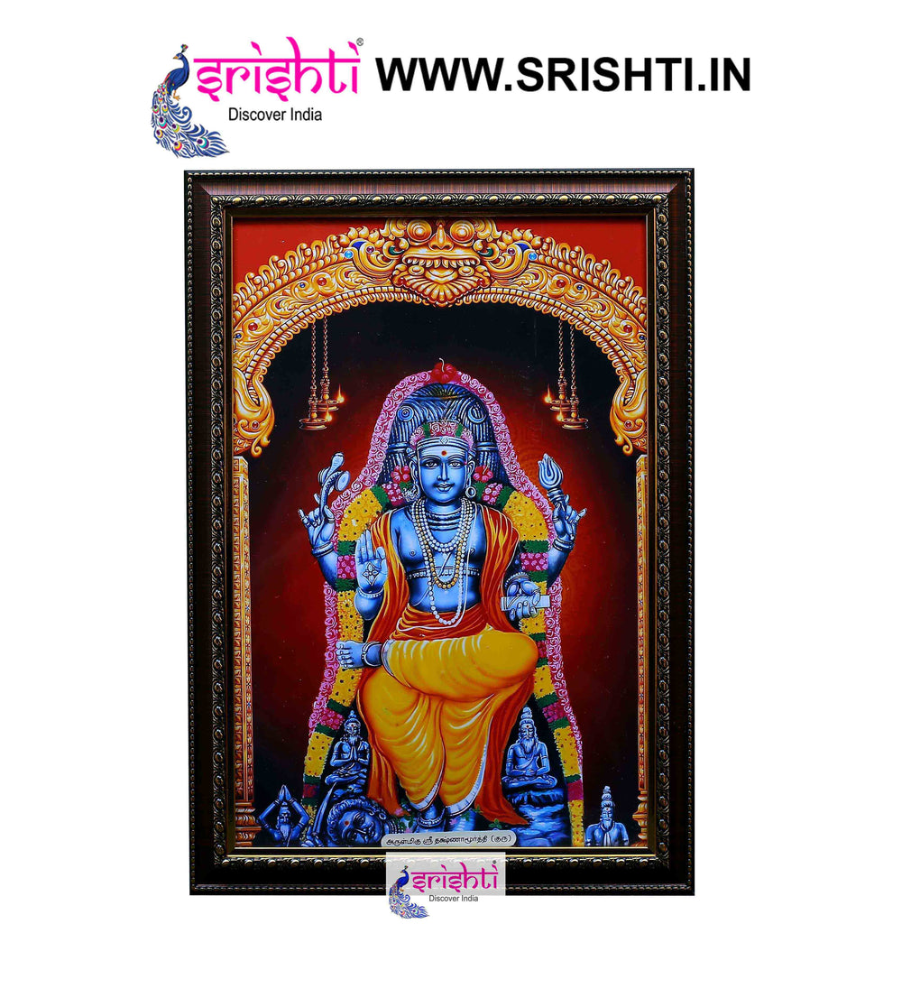 This Dakshinamuthy Photo Frame comes with Wooden Frame and Fiber Glass covering.