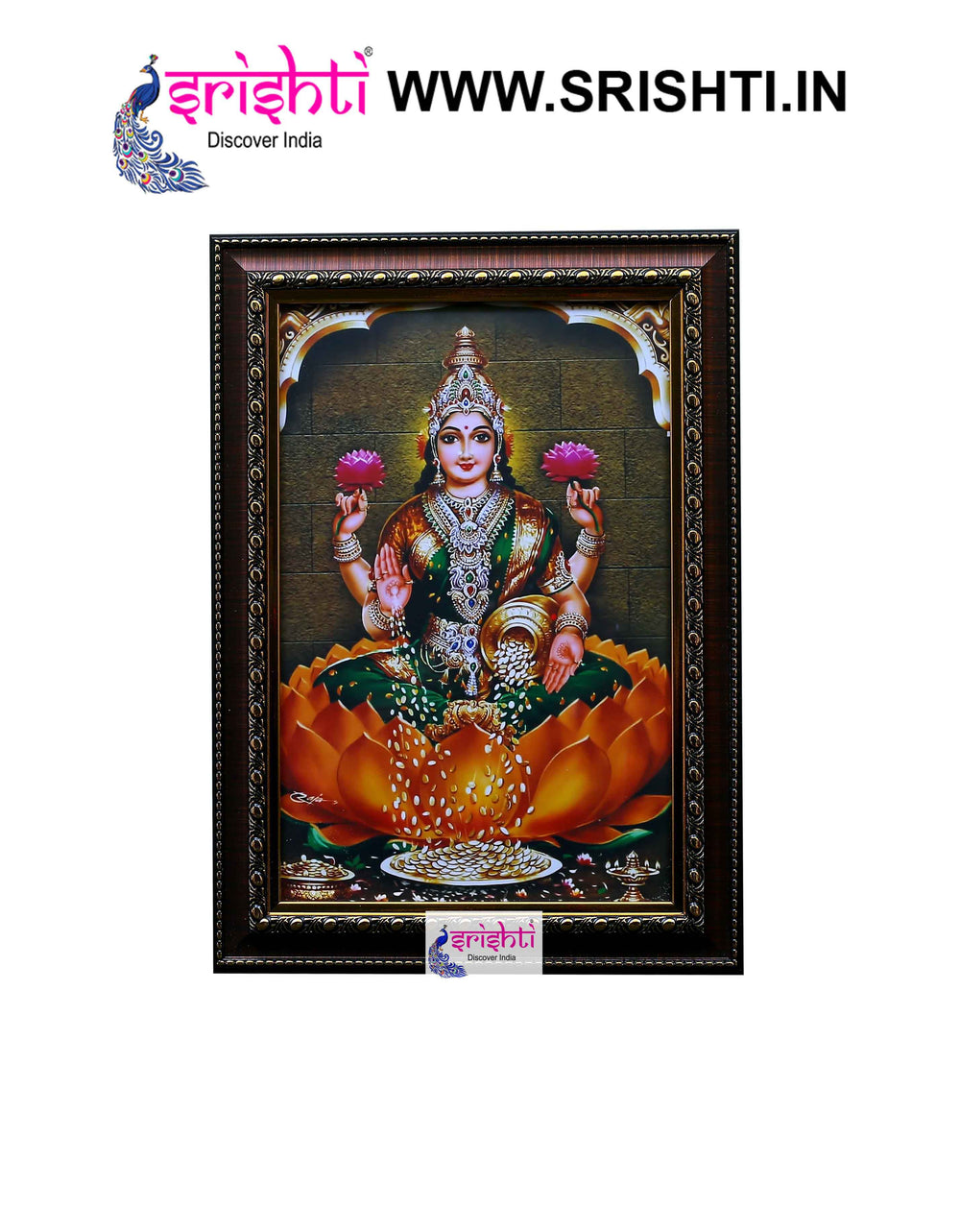 This Lakshmi Photo Frame comes with Wooden Frame and Fiber Glass covering.