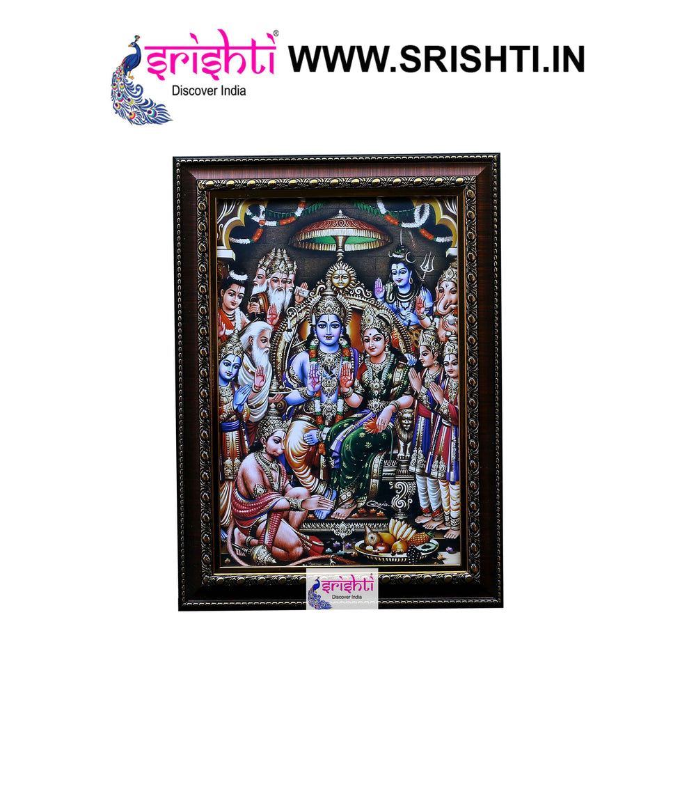 This Ramar Pattabishekam Photo Frame comes with Wooden Frame and Fiber Glass covering.