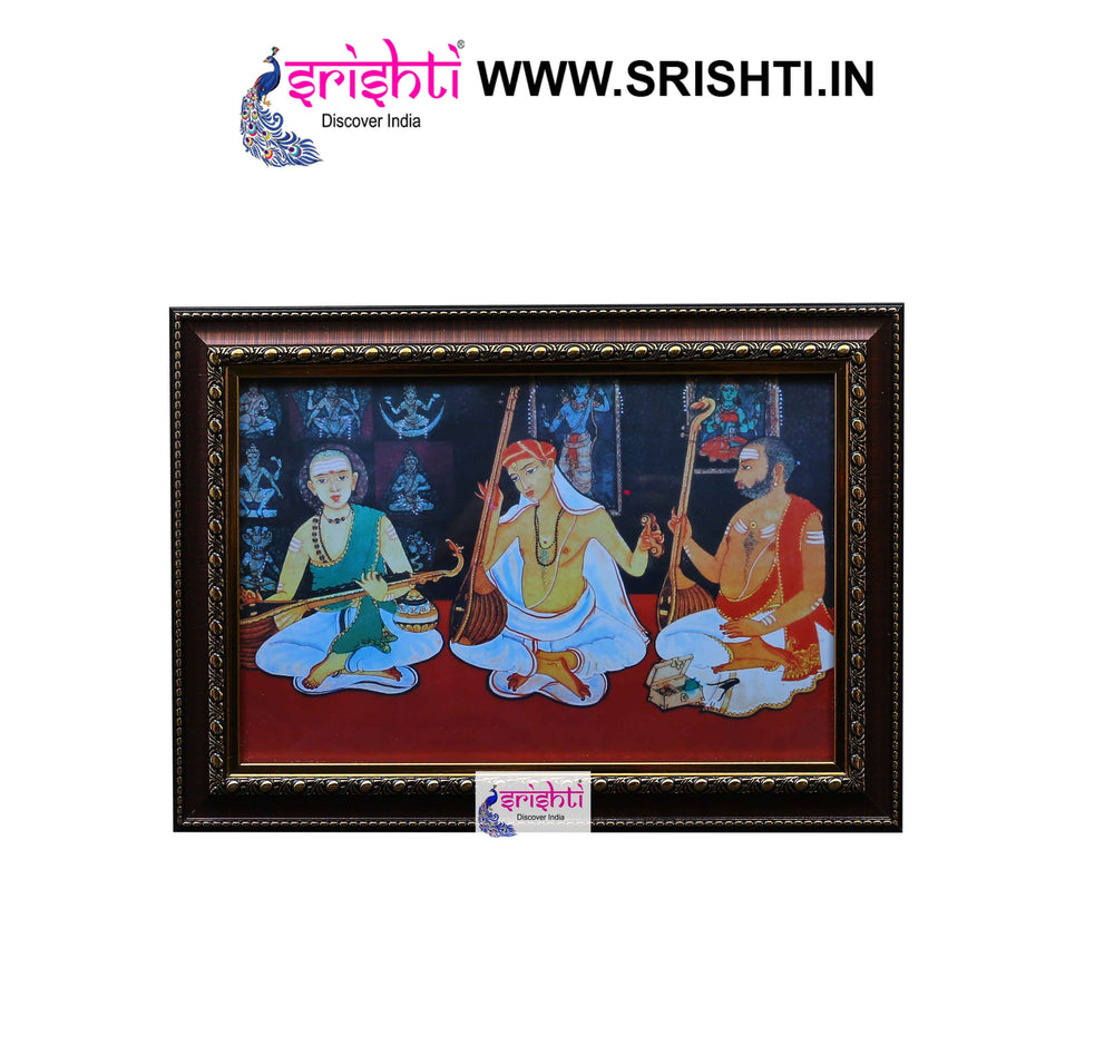 This Sangeetha Mummoorthigal Photo Frame comes with Wooden Frame and Fiber Glass covering.